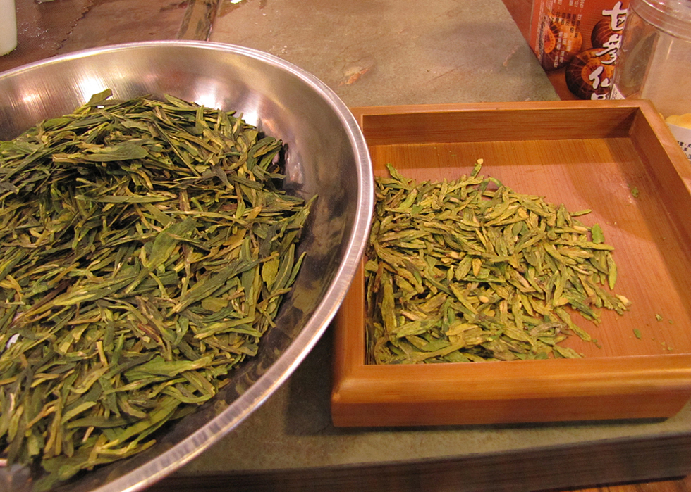 Сперва Юля привела нас к продавцу зеленого чая, где мы пару часов пили 8–9 разных сортов и выбирали наиболее понравившиеся. Особенность покупки чая в Китае заключается в том, что все дают попробовать. Бесплатно. И заваривают при этом правильно, чтобы показать товар лицом.