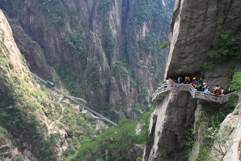 После окончания чайного тура мы попрощались с Юлей и дальше поехали самостоятельно. Добравшись на поезде до города Тунси, а потом на автобусе до гор Хуаншань, мы поднялись наверх на фуникулере и очутились в сказочно красивых горах.