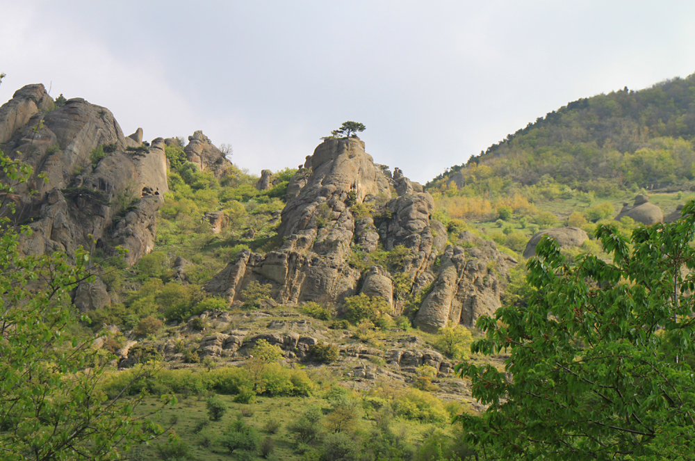 У нас была возможность посмотреть заранее расписание локальных автобусов из Алушты, поэтому мы доехали сразу до села Лучистого (наш рейс был в 9:10, интервал час-полтора), а не до поворота на Лучистое. В самом селе по улице Горной мы поднялись наверх и прямо, игнорируя указатель «Долина Приведений».