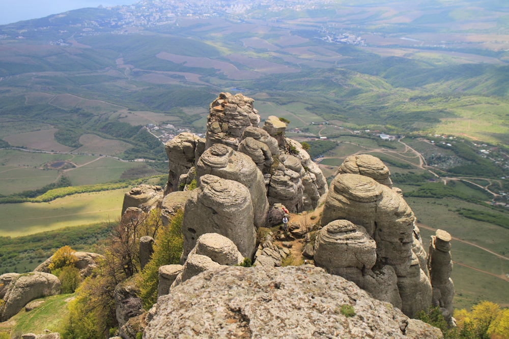 Обедали на пике Аленга. Народу там было много, мы даже не полезли на саму вершину, а сели ниже, куда не всякий доберется. Было первое мая, в этом году сразу и пасха, и день весны и труда, плюс высокий турсезон. Я бы сказала, эта часть маршрута единственная, где людей было больше, чем хотелось бы: на Аленгу ведет легкий однодневный маршрут и можно приехать на джипе.