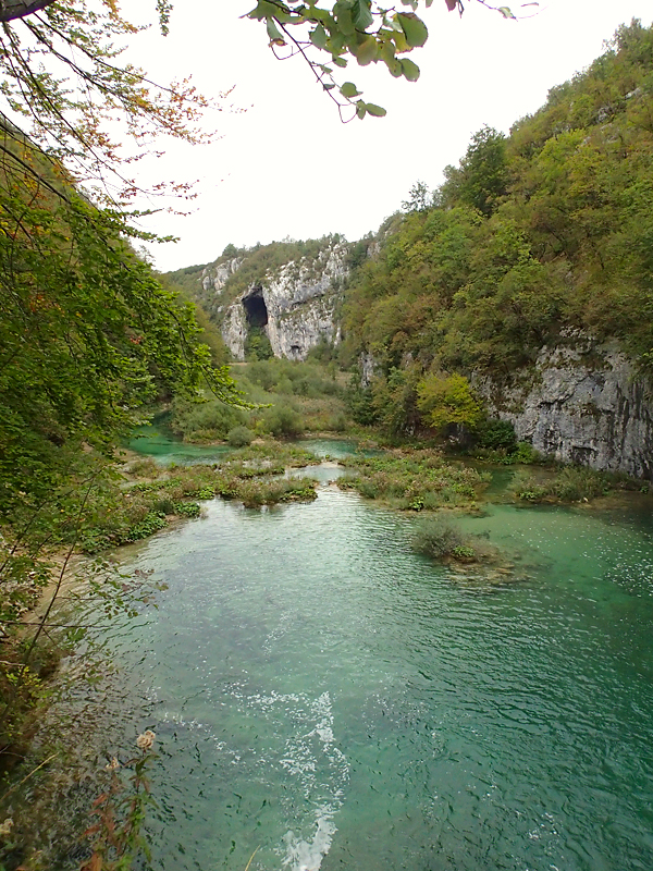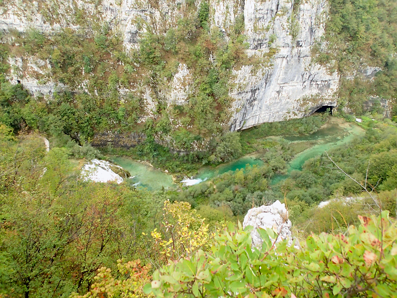 Но увы, это уже за пределами оборудованной территории, в ущелье Корана. Мостков нет, тропинок нет, нужна лодка. Я попыталась пролезть хоть немного вниз вдоль реки. И в процессе этого сильно зауважала тех, кто сделал парк Плитвицкие озера доступным для посещения, построив мостки над водой и тропинки. Без них двигаться очень, очень сложно. Я быстро отказалась от этой затеи.