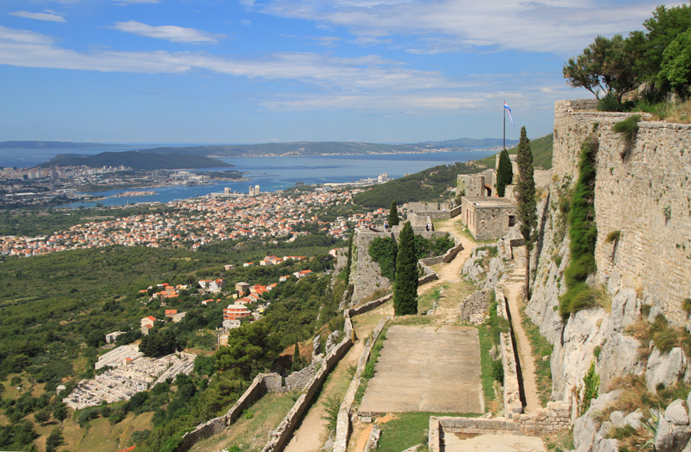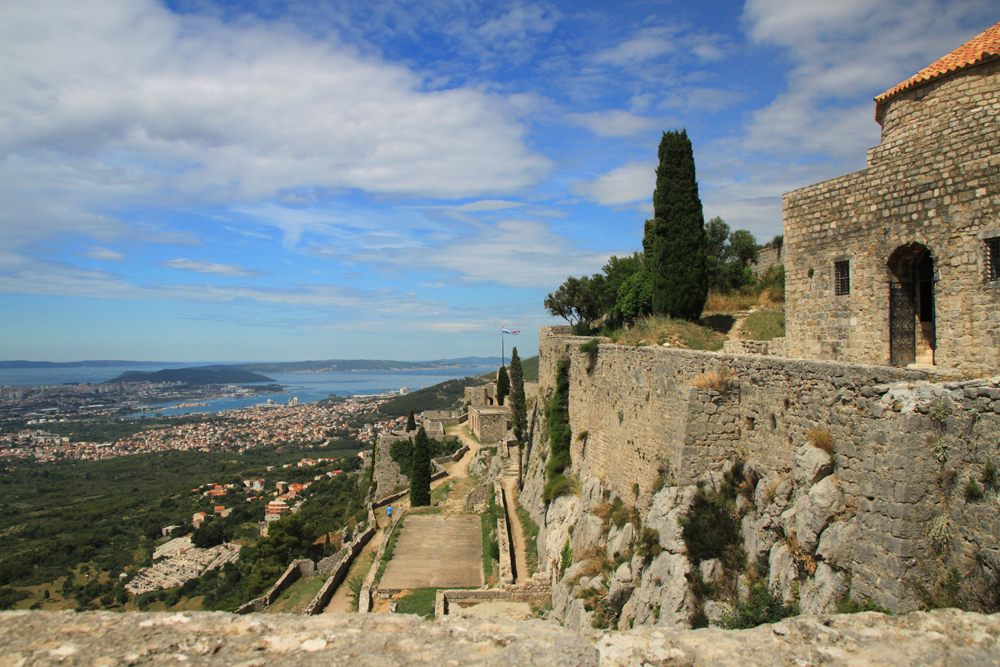 Над долиной, ведущей к Сплиту, возвышается скала. А на ней построена крепость Клис, которой в общей сложности больше двух тысяч лет. Уж очень хорошим было естественное укрепление, еще в 3 веке до нашей эры тут начали что-то строить. Стены много раз разрушали, крепость переходила то к венецианцам, то к туркам, то к хорватам. В нынешней версии у крепости три линии обороны.