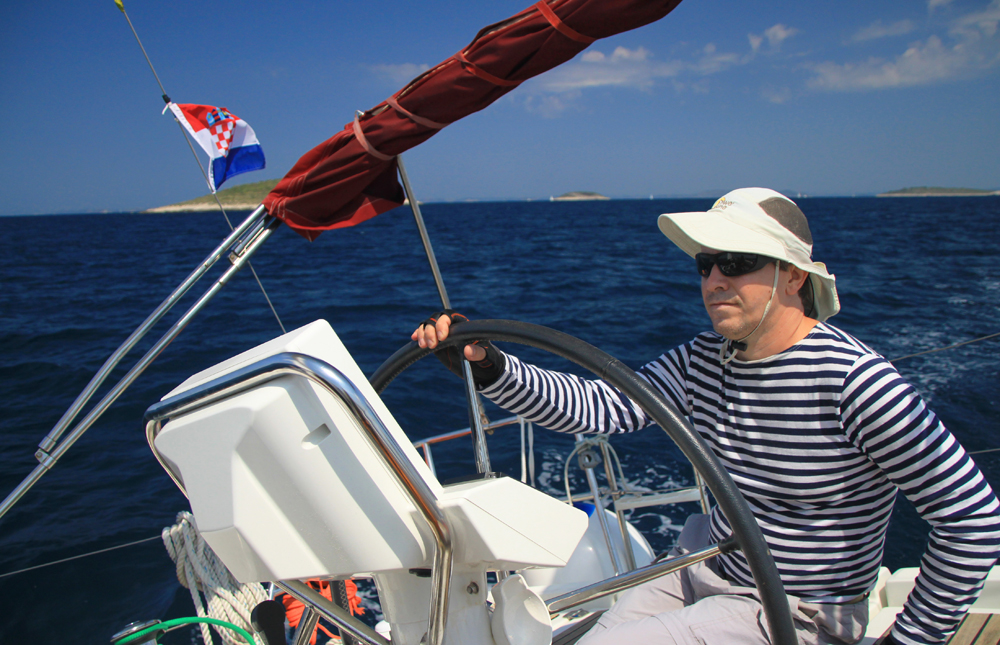 Последний час в проливе мы свернули паруса и шли под мотором. Так везде получалось в хорватских проливах: во-первых, чаще всего там ветровая тень, во вторых, в узком проливе ходить галсами сложнее, вокруг другие яхты.