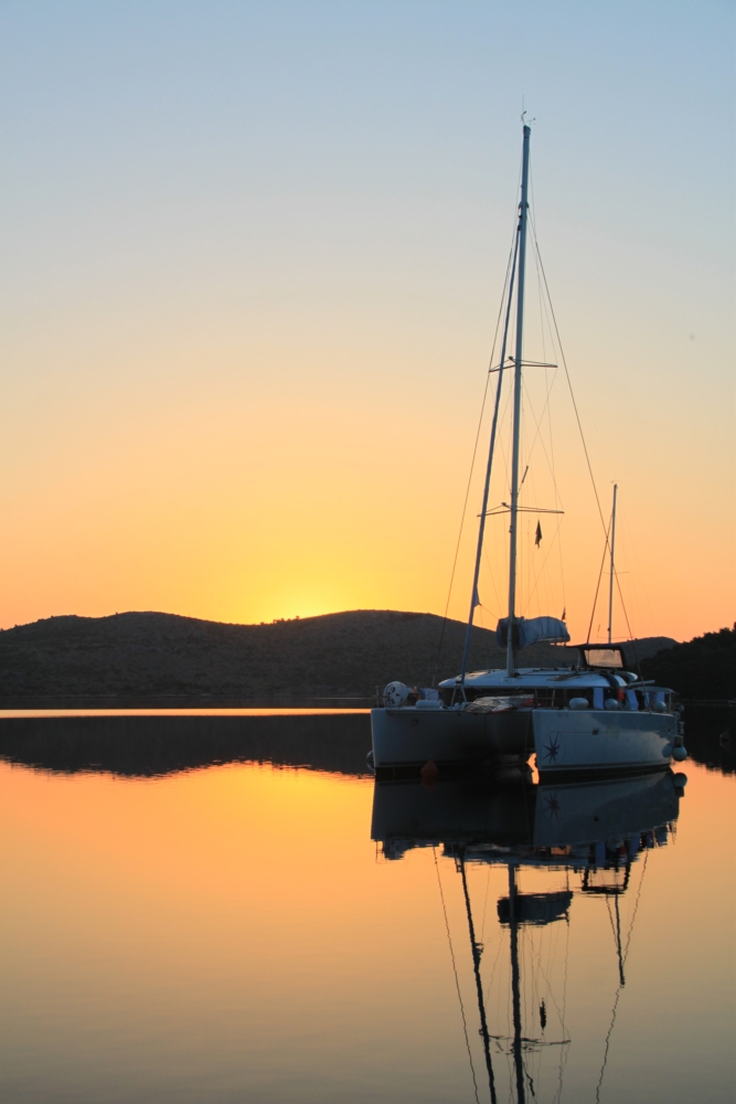 Прошли 32 мили за шесть часов с небольшим, кинули якорь в бухте Солинска возле острова Вели Дрвеник.