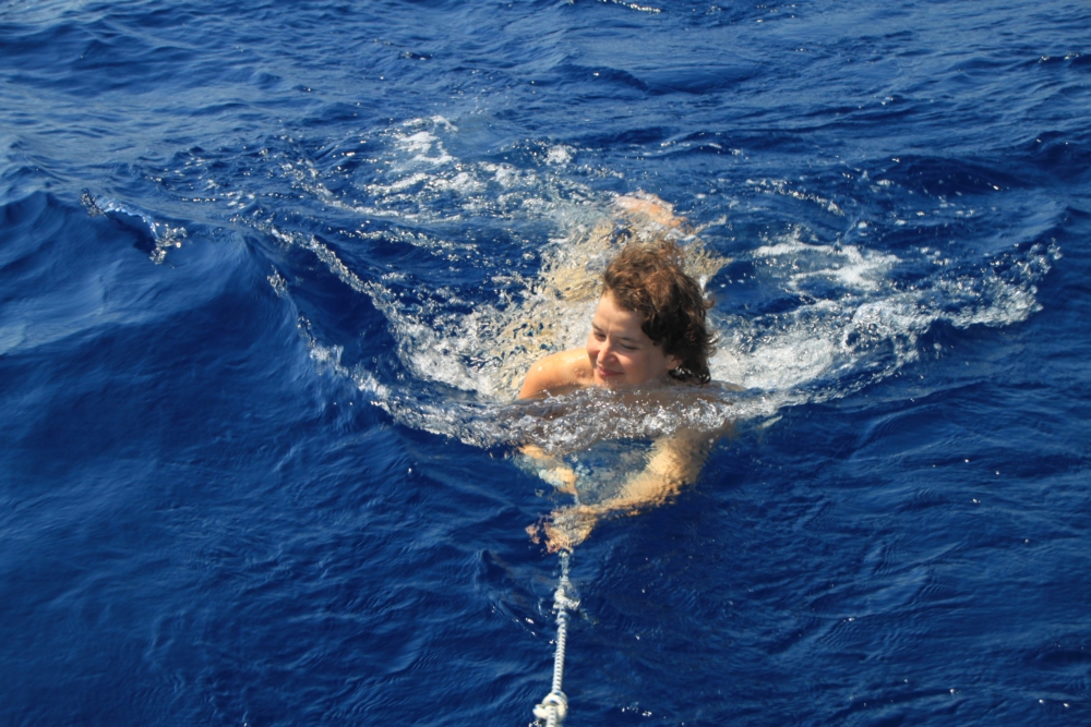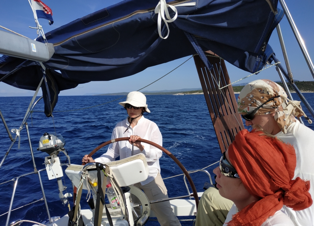 На обед встали в бухту Вели Дубока рядом с яхтой немецких нудистов. Казалось бы, кого этим можно удивить в Хорватии? Но тем не менее мы наблюдали довольно смешную пантомиму. Когда мы заходили в эту бухту, нудисты нам приветливо помахали. А мы с энтузиазмом помахали им в ответ и бросили рядом якорь. Радуясь, что можно купаться голышом и никто не будет от этого морально страдать. Пока мы варили суп, в бухту пытались приехать еще пять лодок. Каждая из них видела немецких нудистов, приветливо машущих им руками, всего лишь руками, и в ужасе разворачивалась назад. Ну и славно, в бухте было мало места.