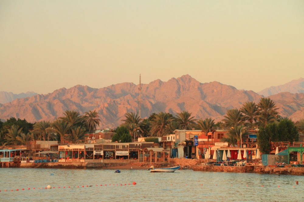 С одной стороны от Дахаба — гористая пустыня, с другой — Акабский залив Красного моря.