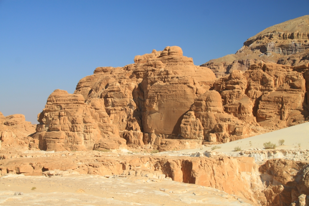 Белый и Цветной каньоны — это единственная экскурсия, на которую мы съездили из Дахаба. Самостоятельно по Синайскому полуострову ездить невозможно, он весь — одна большая военная зона с чек-постами. Поэтому мы решили поехать организованно, и выбрали для этого 1 января :-)