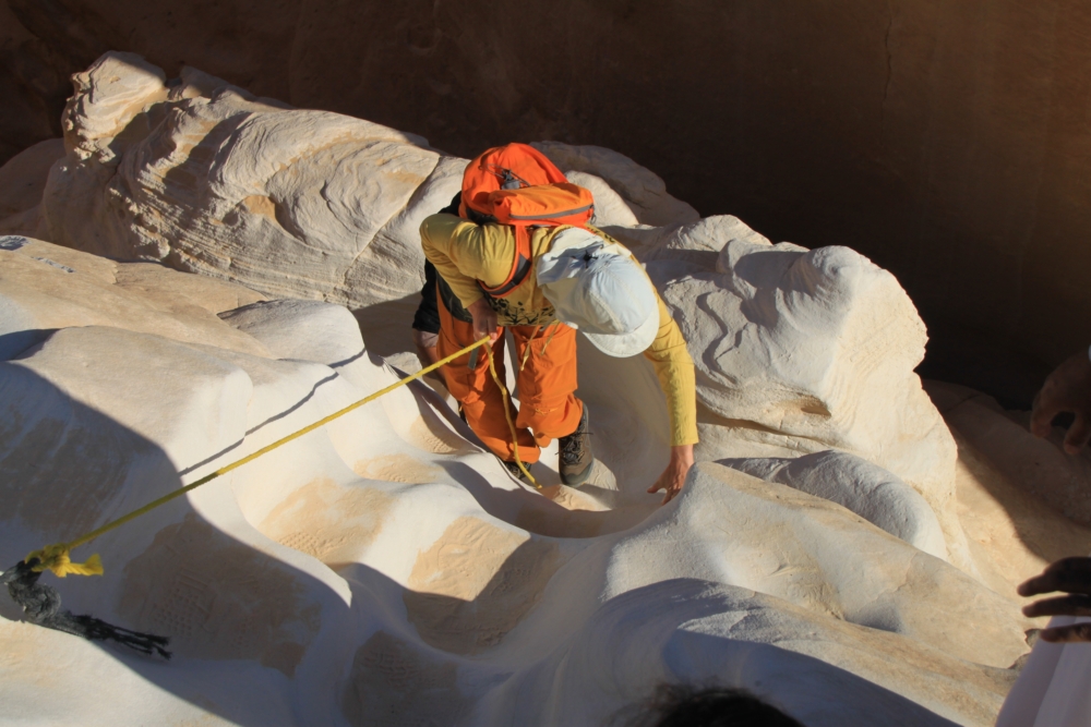 На этой фотографии есть единственное место для лазания и еще тут понятно, почему каньон назвали Белым. Нижняя порода действительно белая.