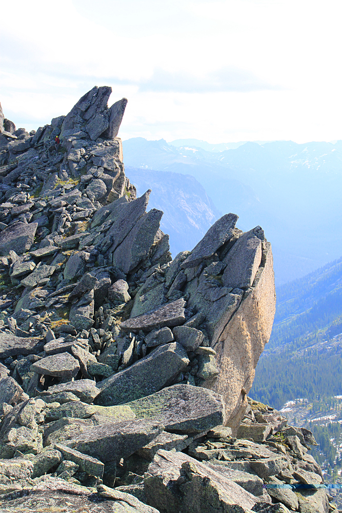 На перевале мы некоторое время увлеченно лазили по соседним валунам и размышляли, стоит ли подниматься на пик Молодежный. Решили, что как-нибудь в другой раз.