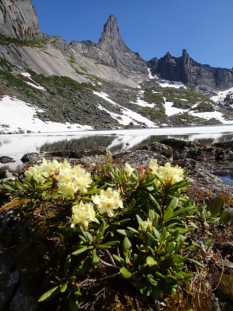 Очень замечательный, самый высокий пик в районе (2260) и один из весьма сложных для восхождения. Надо сказать, что скалолазы в Ергаки ходят, но только со стороны озера Светлого, внутри района я их ни разу не видела.
