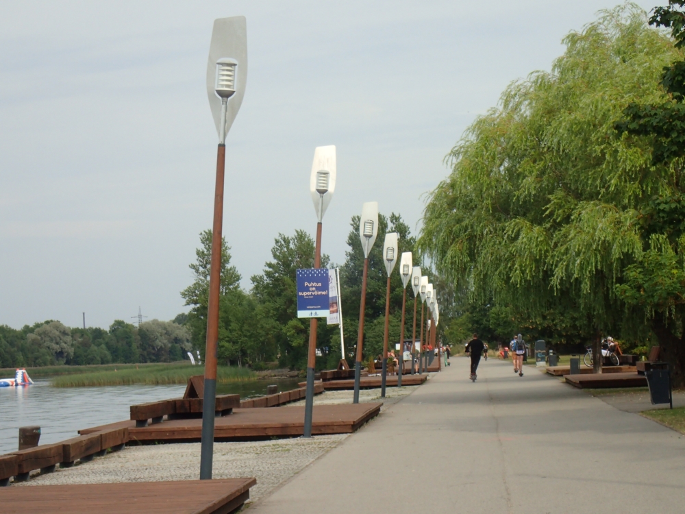Набережная реки Пярну с тематическими фонарями.