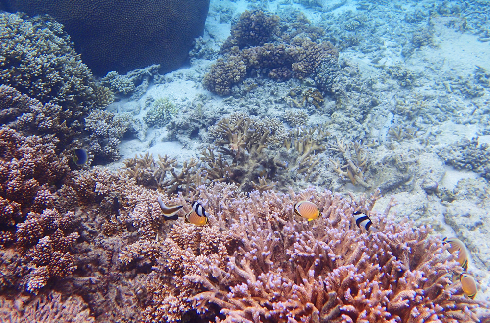 Меня все спрашивают — а где же «те самые» красные кораллы, из которых делают бусы? Не знаю, на Фиджи их нет, зато есть розовые, голубые и вот такие, с сиреневыми кончиками и очень острые.