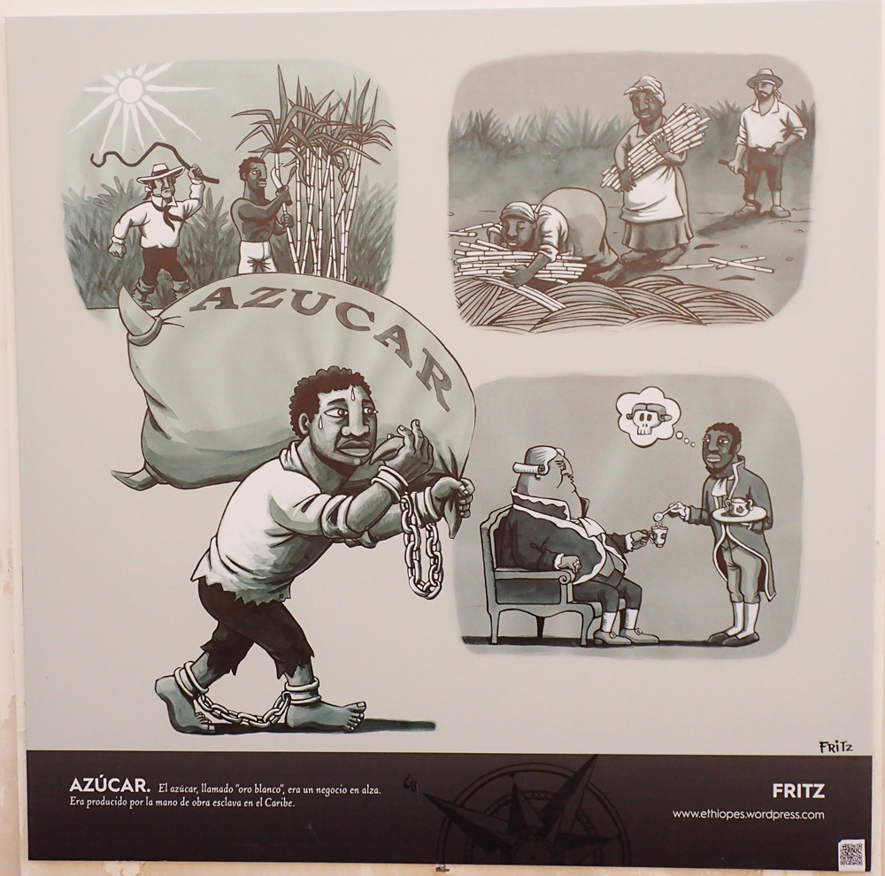 Там есть старый рынок, скорее похожий на античный: каменные портики и прилавки с овощами, фруктами и свежей рыбой. Снаружи рынок украшен картинами. Картина со сказочным Кадисом тоже оттуда. А еще тут есть тема колониальных товаров.
