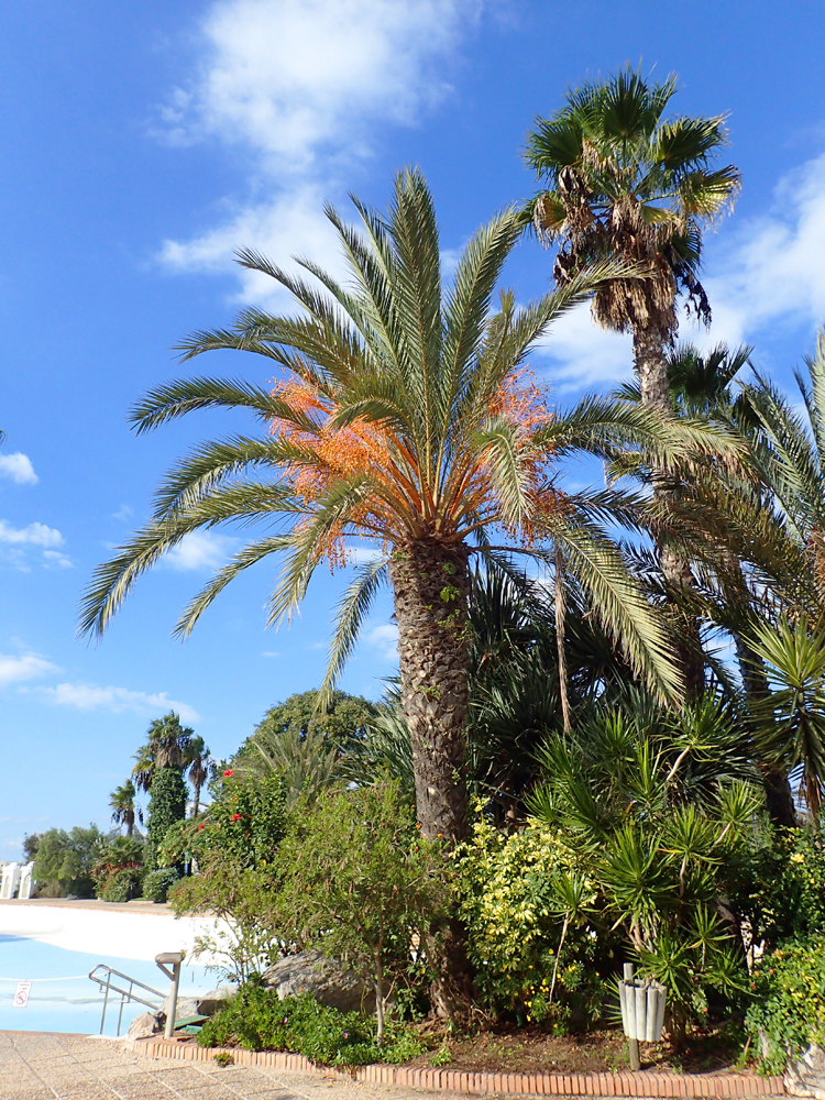 Я под финиковой пальмой, только финики тут зеленые.