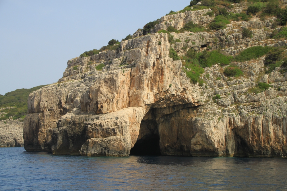На Антипаксосе мы немного побыли туристами, а именно ходили на моторе смотреть Голубую пещеру. Это был самый зрелищный день нашего похода.