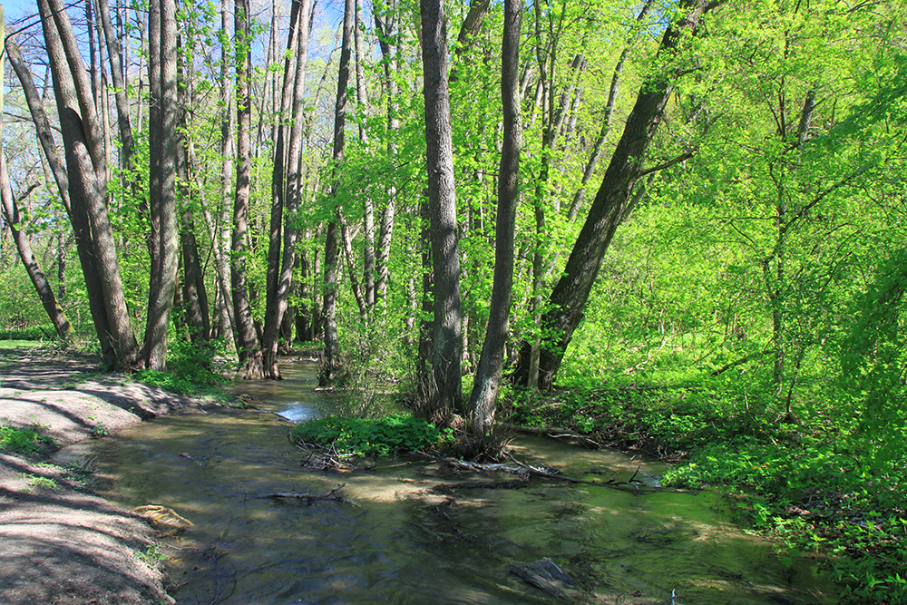 По дороге нет каких-то особенных красот, но гулять было очень приятно — новая свежая зелень под солнцем всегда прекрасна.