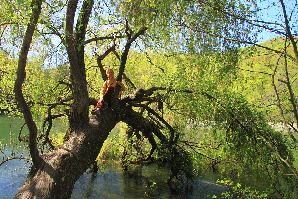 Маршрут абсолютно ровный до большой поляны и водопада, поэтому люди идут с собаками, маленькими детьми и стариками. Но до этой поляны также можно доехать на смешном туристическом поезде в открытом вагончике.