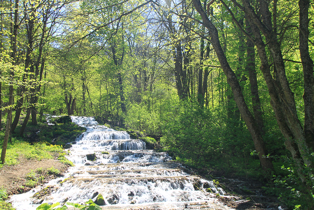 Возле поляны Салайка разливается многоступенчатым водопадом.