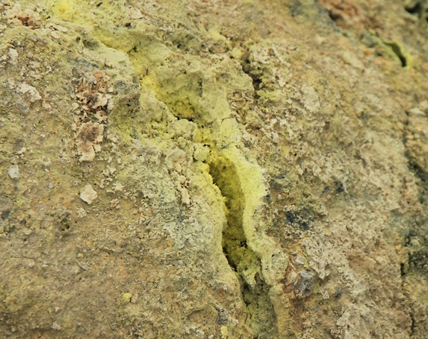 Мы пытались взять на память кусочек серы, но она такая хрупкая, что быстро превращается в пыть: