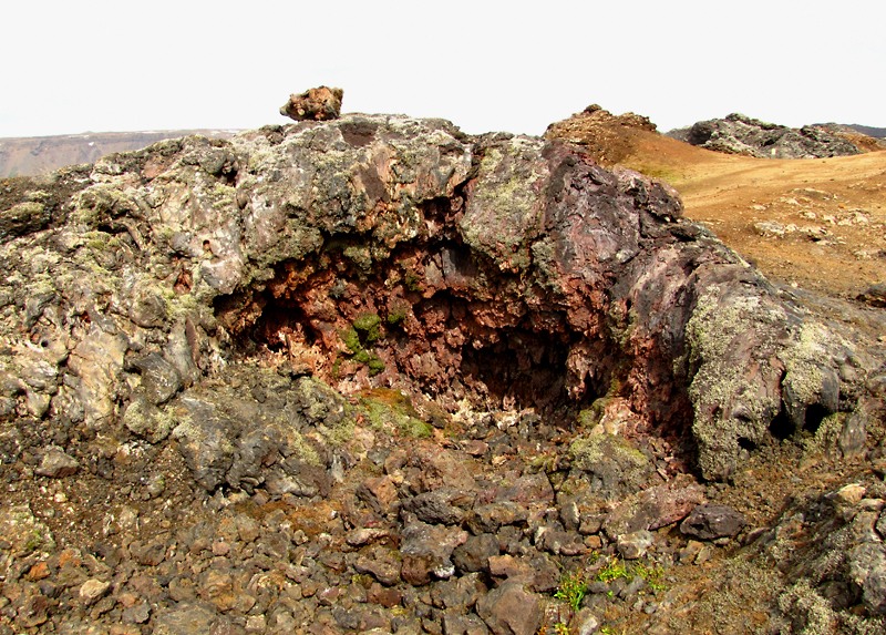 По дороге наблюдали лавовые пещерки и тоннели, образованные во время извержения скопившимися газами.