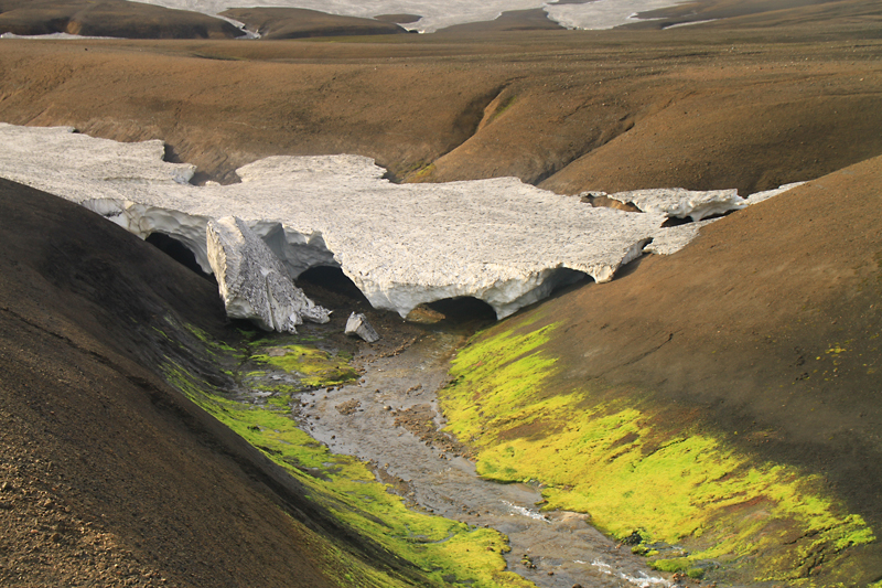 До середины июля долины ручьев забиты снегом, и, говорят, кое-где нужны ледорубы. В сентябре снег выпадает опять. Полтора месяца погода считается годной для того, чтобы пройти по тропе Laugavegurinn. Хорошо, что мы не поехали в июне, как изначально собирались.