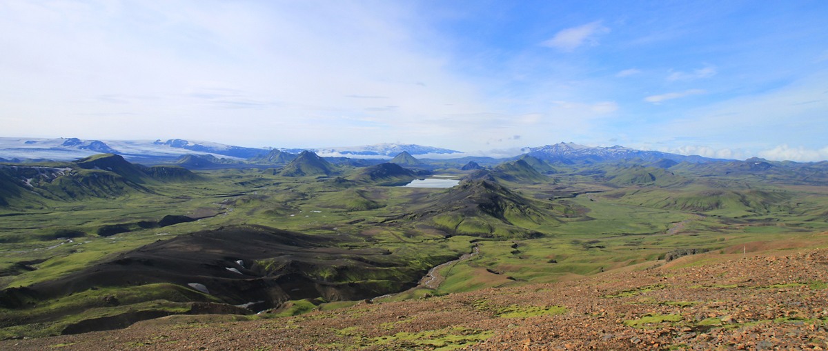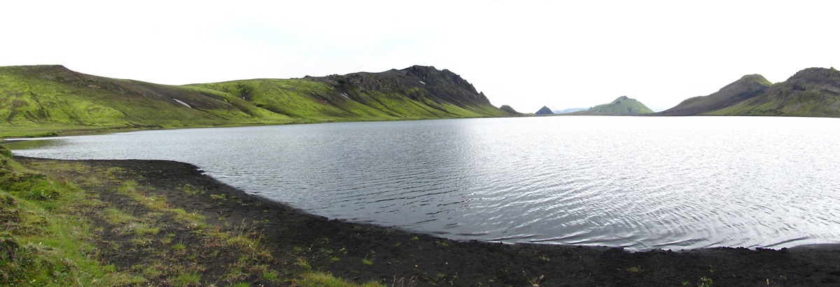 С гребня особенно хорошо было снимать панорамы. Вдалеке виднеется озеро Альфтаватн.