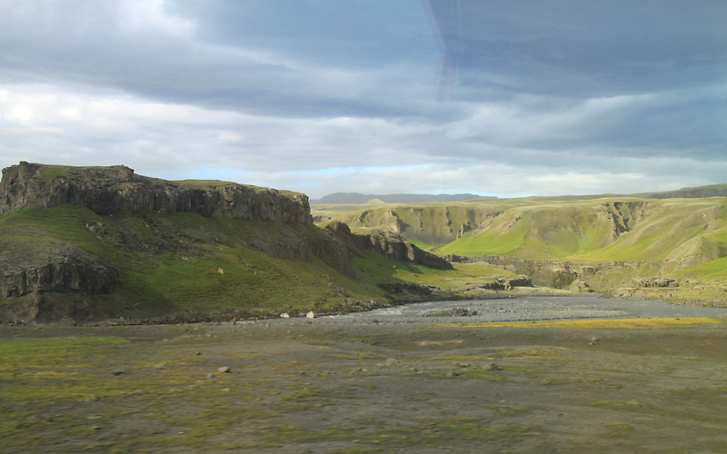 А вечером мы выбирались из парка в нехарактерное время и нетрадиционным способом. Рейсовый автобус в Рейкьявик идет днем, а это означает потерянные сутки - ни утром, ни вечером этого дня уже никуда не успеть. Поэтому мы попросились к водителю другого автобуса, который вобщем-то не должен был возить пассажиров. Мы были готовы заплатить денег (а билет на такое расстояние стоит дорого, 8000 крон), но с нас не взяли денег, потому что не могли выдать нам взамен билет. Вот такая удивительная история, благодаря которой мы все-таки попали в Кверагерди.