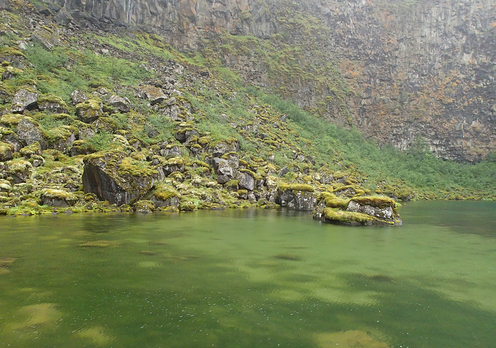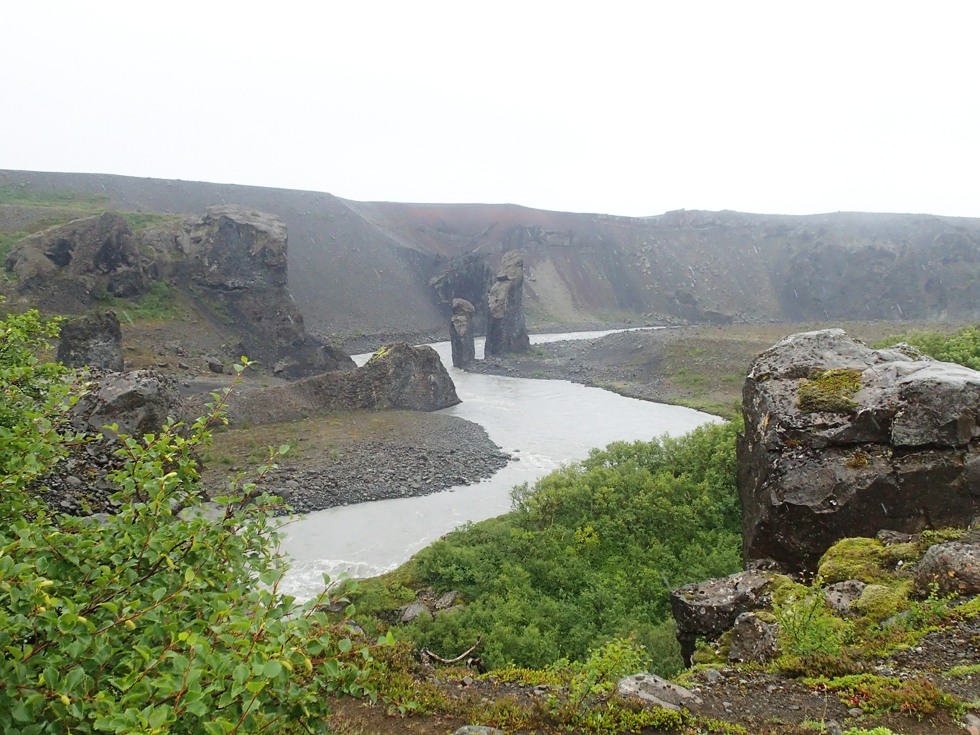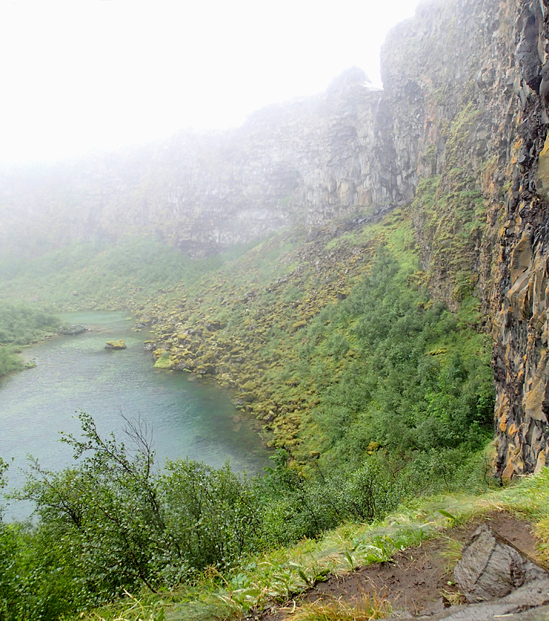 Вообще-то Асбирги — это гигантский след от копыта восьминогого коня Слейпнира, на котором ездит Один. Ширина копыта — около километра, длина — 3,5 км, след имеет ровные базальтовые края в 100 метров высотой. Внутри растет лес, поскольку пространство защищено от ветра, есть много троп, кое-где по базальту можно вылезти наверх и тоже погулять.
