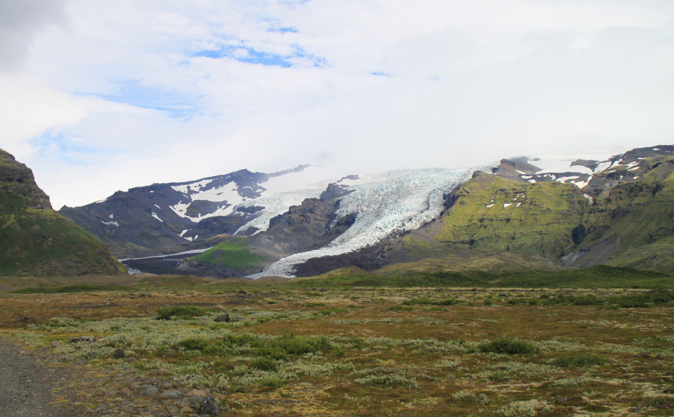 В районе ледника Скафтафетль мы попали в око циклона. То есть дождь прекратился и в облаках образовалась дырка, хотя горизонт был многообещающим по-прежнему.