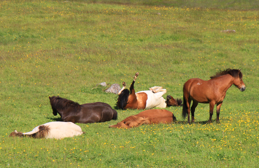 На лугу паслись и смешно валялись лошади. Позже мы с ними смогли познакомиться.
