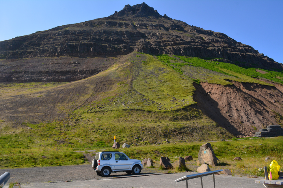 Вечером мы поехали на Болафьятль, это гора такая к западу от Болунгарвика. Сперва думали, что туда придется идти пешком, но оказалось, что есть проезжая грунтовая дорога в одну колею.