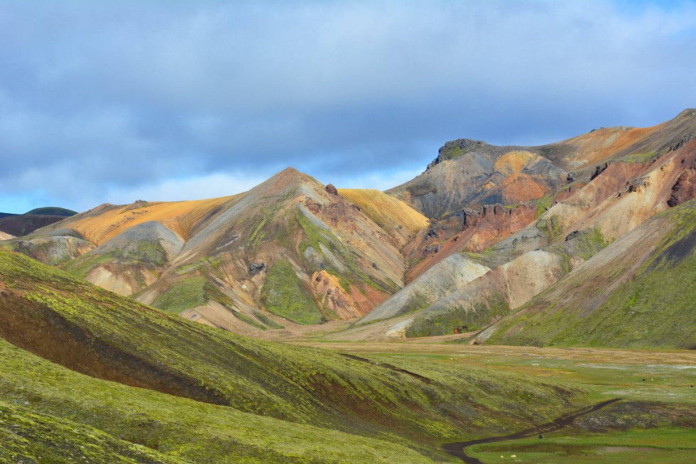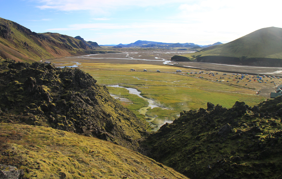 Позавтракав, мы отправились гулять по окрестностям. Вот долина с кемпингом, одним из самых неуютных, огромных и бестолковых в стране. Но все терпят, ведь это же Ландманналойгар.