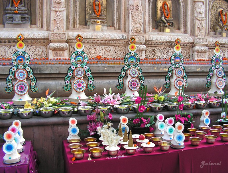 Подношения: тормы и чашечки с маслом.