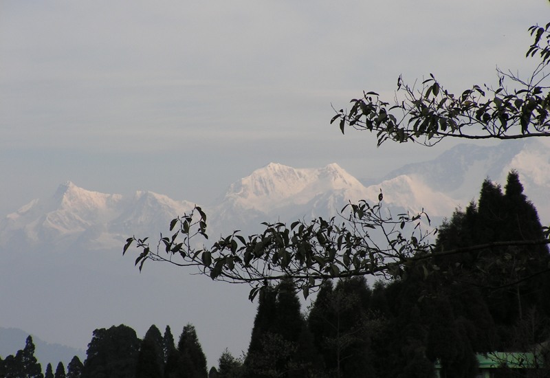 я поискала на горизонте Канчендзонгу, но на ней висело облако. И вот, когда я уже спустилась с холма вниз, она-таки выплыла из тумана ненадолго: