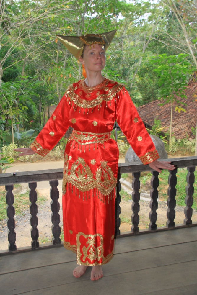 В одном из домов собраны национальные костюмы, в которые можно нарядиться. Я выбрала себе костюм Суматры. Мне идут рога? :-)