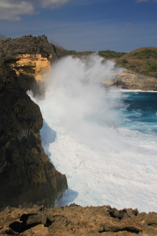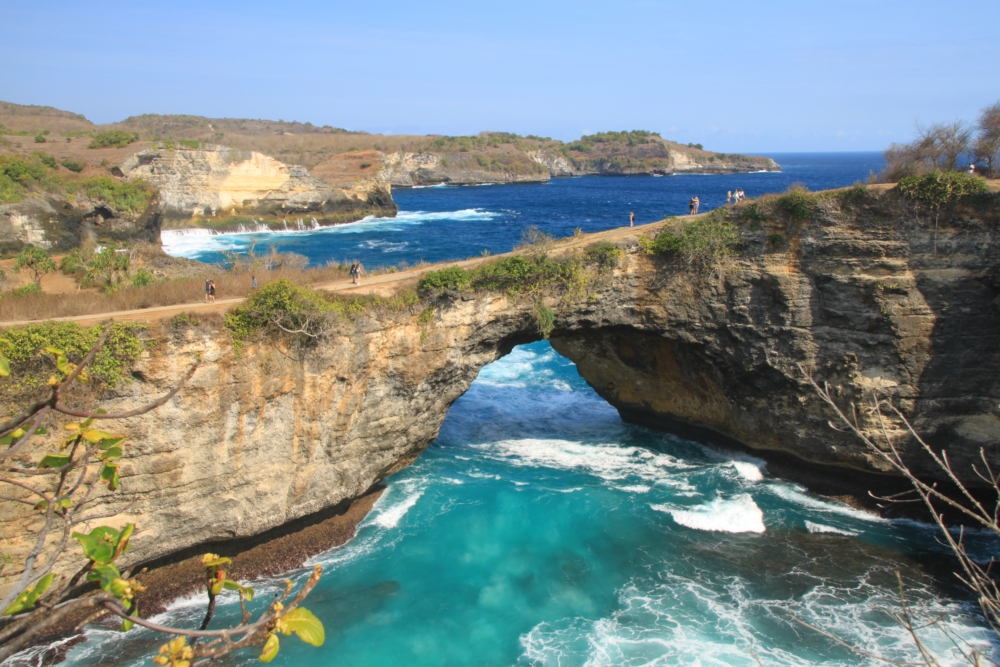 Между тренировками по фридайвингу и попытками увидеть скатов мы ездили по Нуса Пениде на скутере к разным красивым местам. Возле нашей деревни Пед берег острова был плоским. Зато на другом конце острова он круто поднимался и превращался в драматические скалистые обрывы.