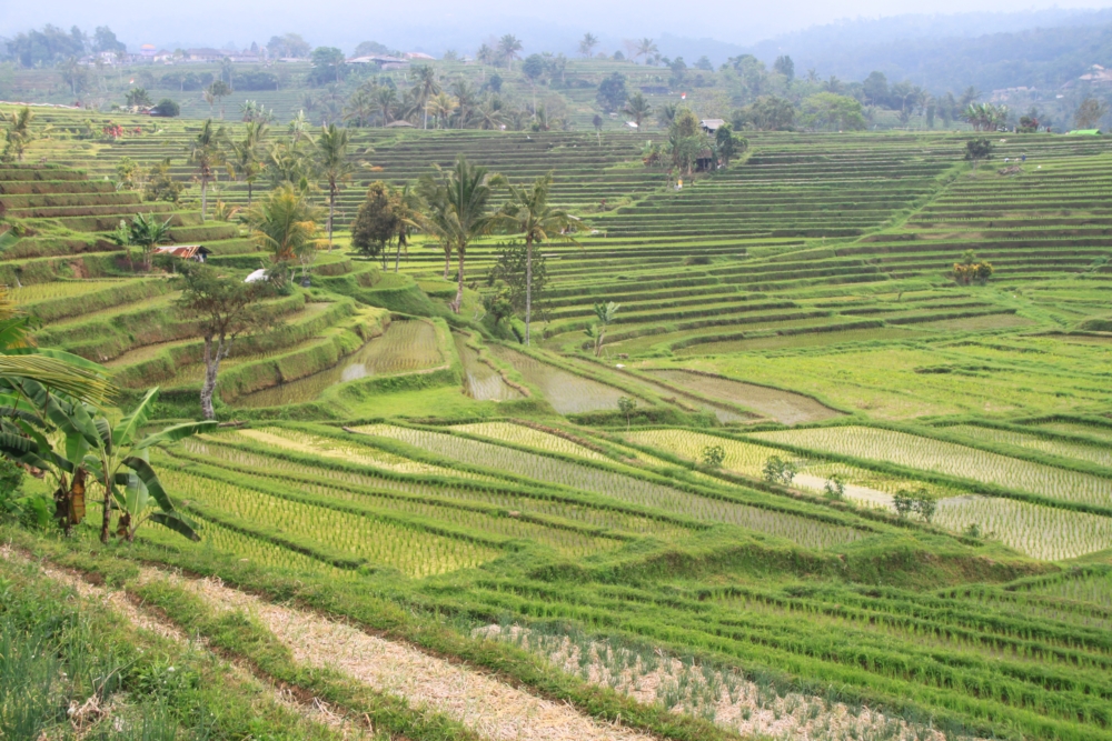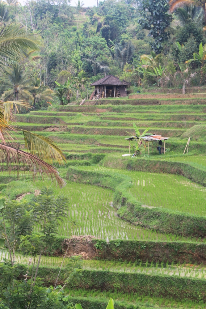 Вот тот пейзаж, который я хотела увидеть. За счет большого количества воды, которую собирает над островом высокий вулкан Агунг, в сухой сезон рис тут тоже растет. Воды хватает круглый год.