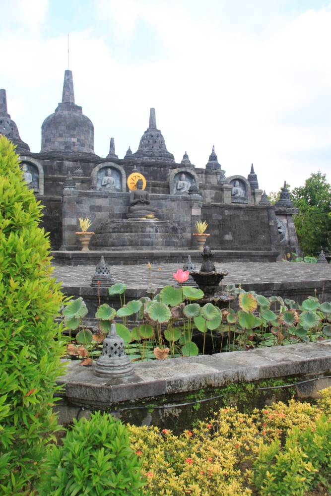 Буддизм для Бали не характернен, зато на Яве есть буддийский храмовый комплекс Боробудур 8–9 веков н.э. И вот в новом балийском храме построили небольшую реплику Боробудура, а заодно и ретритный центр.