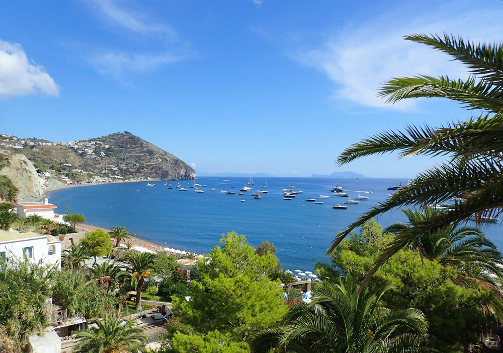 Термальный пляж Сорджето (на переднем плане) и Сан-Анджело.