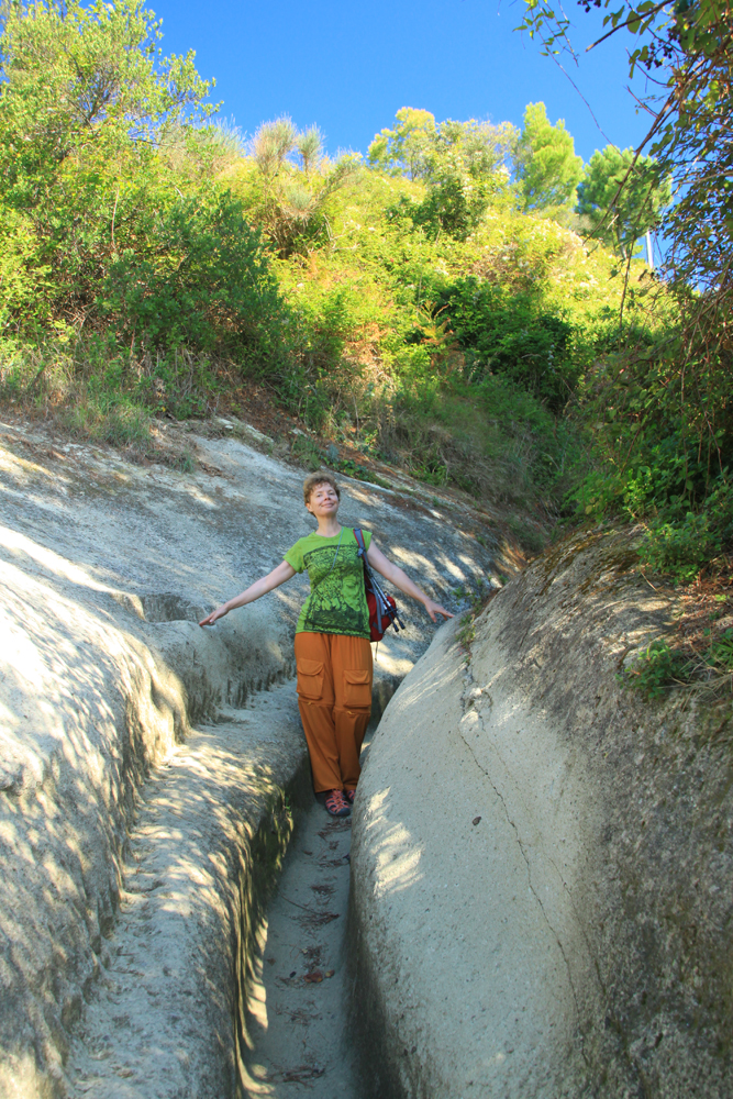 Поднимались мы от Форио по ОSM-навигатору и он отлично нас довел. Очень ценно, что он знает пешеходные тропинки. Без него мы бы раз десять повернули не туда. Навигатор с нами разговаривал по-английски, мы шли и представляли, как бы он говорил по-итальянски: «Мамма-миа! Риторно, риторно, идиота!» Я с удовольствием декламировала это с итальянскими интонациями.