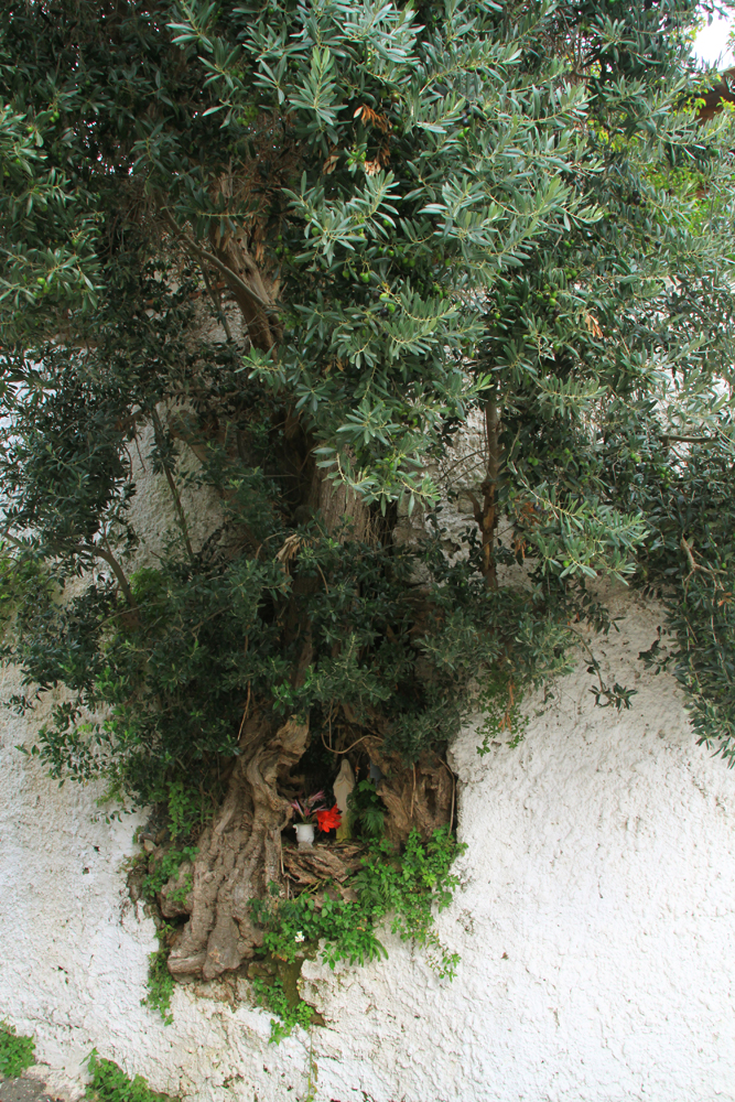 Когда возвращались, увидели большую оливу, замурованную в стену.