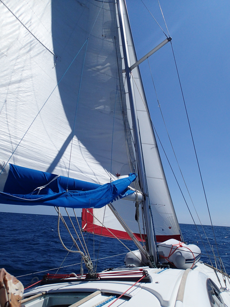 Мы провели в море 11 часов. Вроде все правильно делали, но все равно на перегоне сильно отстали. Как потом говорили более опытные моряки, это отставание на пол-узла зависит от тонкой настройки парусов, в первую очередь, грота.