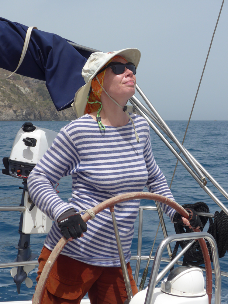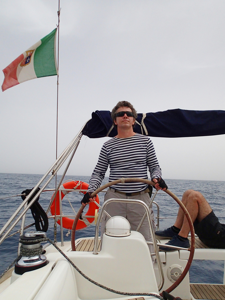 Я расстроилась, потому что нам опять предстоял переход на Прочиду на моторе. Получалось мало парусных часов, а мы многого не успели отработать (брать рифы на парусах, например). Попытались при переходе поставить стаксель, но дело пошло плохо: мы и правда не умеем работать при сильном ветре, а Илья не умеет командовать в авральном режиме. Да еще в проливе между островами сновали большие паромы и мы их боялись. Формально они должны нам уступать, но в реале такая махина маленькой яхте уступать не будет. Мы сдулись, свернули паруса и завели двигатель.