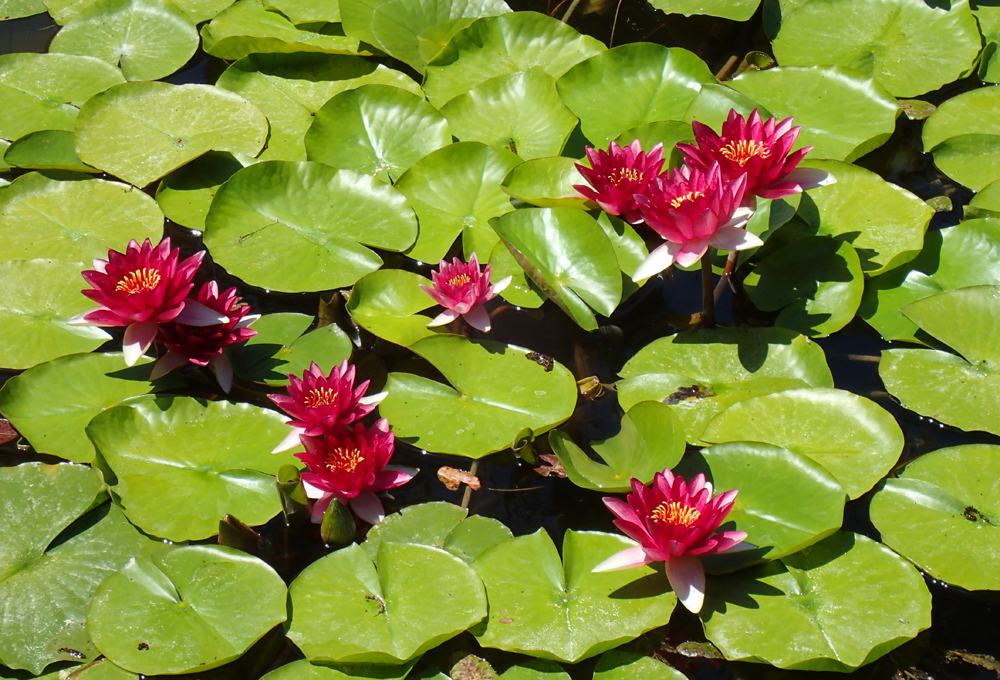 Эти нимфеи ярко-желтые, но засветка помешала.