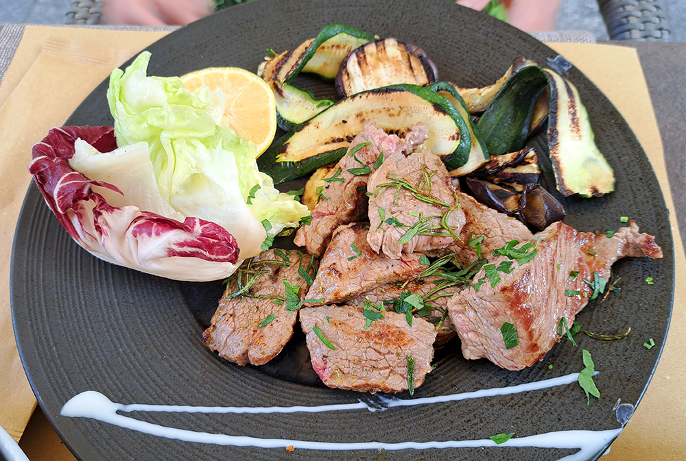 Два блюда, один салат и два сока обошлись в 63 евро. Все вкусно, но жаба, конечно, в обмороке. Но это ладно, в Италии хоть с едой все хорошо, в отличие от Франции, куда мы, собственно, ехали. После Франции мы бы сказали, что цены отличные и вообще нет проблем, а жаба уже давно удавилась.