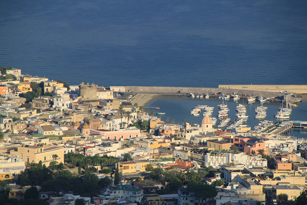 Спуск к Искья-Порто, виды на Арагонский замок.