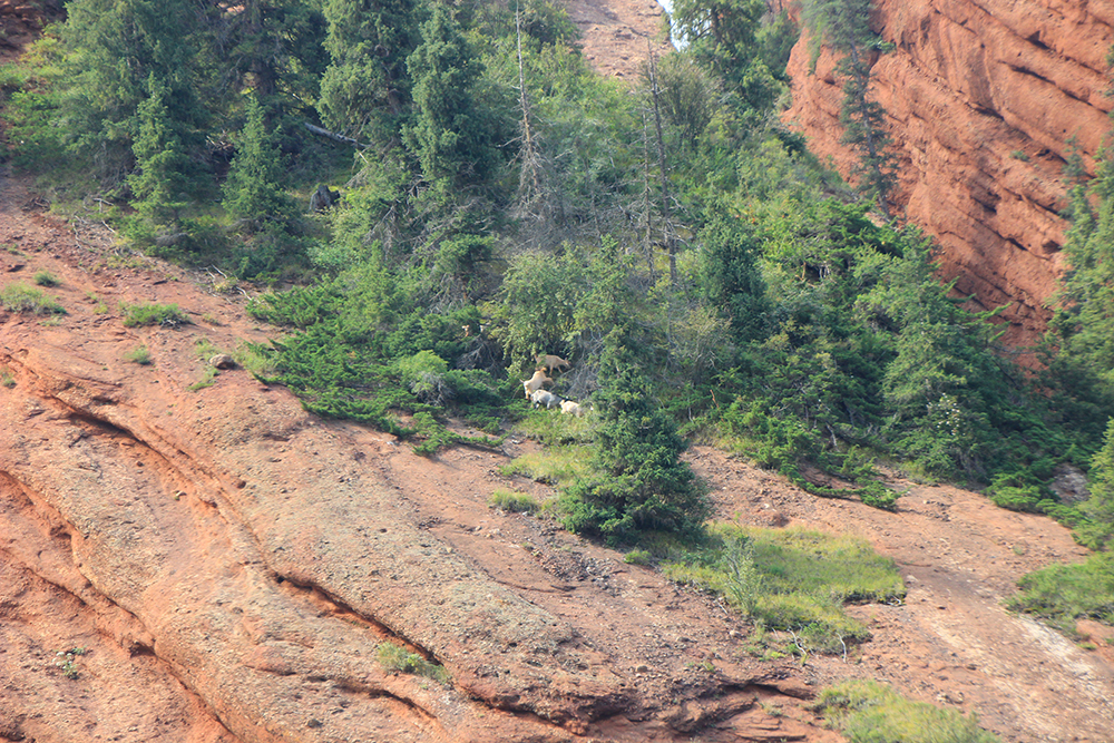 На левой, весьма отвесной части, я увидела стадо коз! Как-то они туда залезли и даже что-то едят :-)