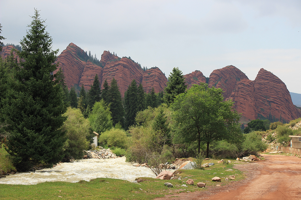 В Киргизии время от времени можно встретить выходы таких вот красных скальных пород.