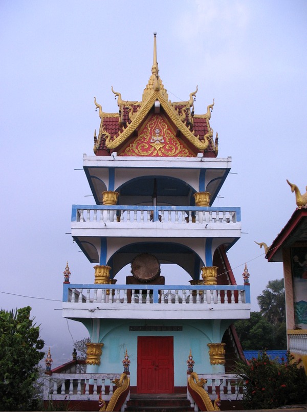 На холме над поселком стоит храм. Фотографировать ночью его не получилось, да и утром был туман. Но храм симпатичный, и монахи очень общительные. Утренние фото: