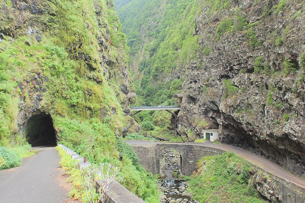 По дороге домой мы поставили машину возле поселка Сан Винсенте (тут же есть водопад Агуа д'Альто) и прошли по старой дороге снаружи от туннеля.